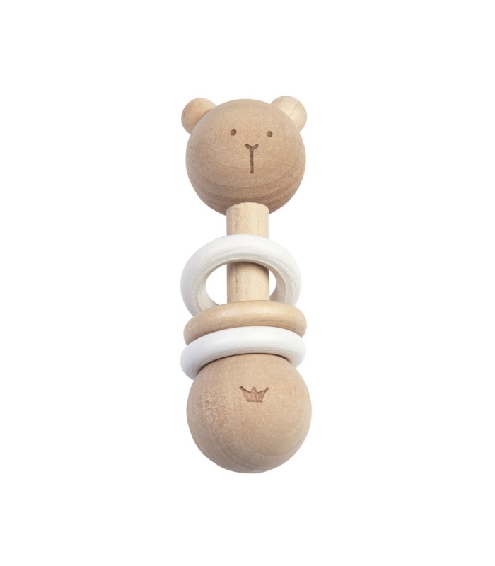 Formaat: 12 cm Alleen handwas Leuke rammelaar in de vorm van een beertje met drie bewegende ringen. De rammelaar is klein, waardoor je kindje hem makkelijk vast kan houden. Hij is vervaardigd van duurzaam FSC hout.