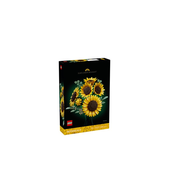 Laat je creativiteit opbloeien met het LEGO Botanicals Boeket met zonnebloemen (11502) bouwpakket voor volwassenen. Dit prachtige LEGO boeket bevat 6 LEGO zonnebloemen in verschillende groeistadia. Geniet van het bouwen van 1 zonnebloemknop, 3 zonnebloemen die net open gaan en 2 grote zonnebloemen in volle bloei, plus 4 takken eucalyptus. Deze LEGO bloemen zijn ontworpen om er realistisch uit te zien en de bloemblaadjes en stelen zijn verstelbaar, zodat bloemisten in de dop een uniek boeket kunnen samenstellen dat ze daarna vol trots kunnen neerzetten als woondecoratie. De set kan worden gecombineerd met andere LEGO sets uit de Botanical collection (apart verkrijgbaar) om een groter bloemendisplay te maken. Zonnebloemen staan symbool voor positiviteit, liefde en geluk, dus deze LEGO bouwset is een leuk cadeau voor vrouwen, mannen en natuurliefhebbers voor een verjaardag, Valentijnsdag, Moederdag of een housewarming. Deze LEGO kunstbloemen set voor volwassenen is ook beschikbaar in de LEGO Builder app, waar bouwers hun model kunnen draaien en hun voortgang kunnen bijhouden.