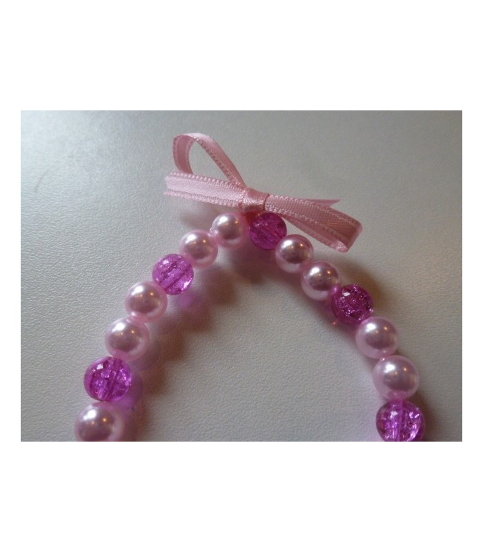 Lief en schattig armbandje gemaakt van parelkleurige en transparante kraaltjes. Afgewerkt met een strikje en een metalen bedelhartje.