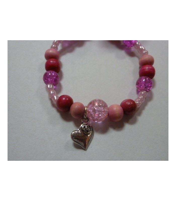 Roze armbandje met lief hartje-bedeltje.