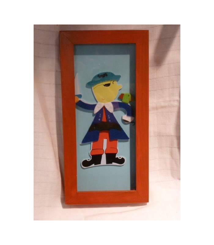 Schilderij piraatje gemaakt van vilt met houten lijstje afmeting 26x13cm