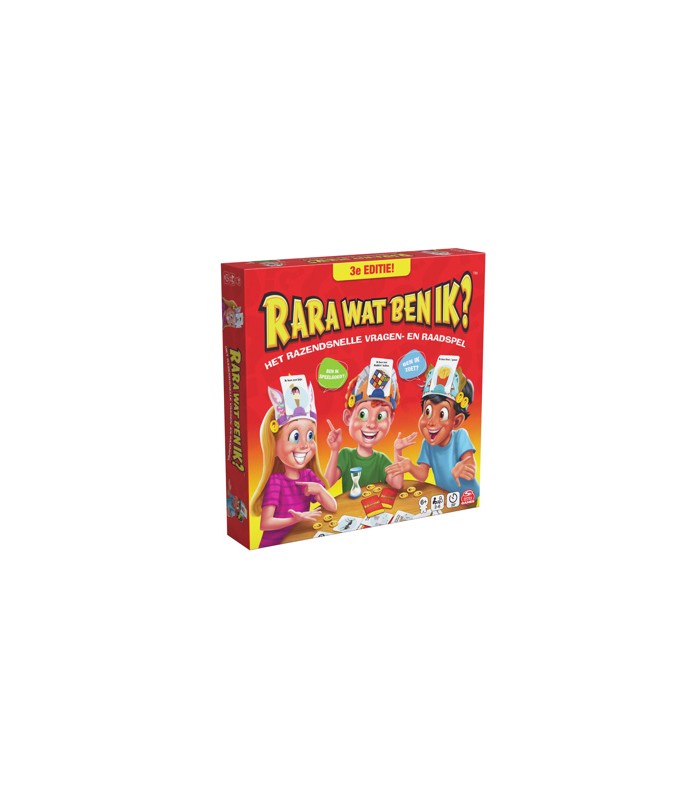 Gezellig raadspel voor het hele gezin. Spelers dragen een hoofdband met een kaartje en moeten door slimme vragen te stellen raden wie of wat ze zijn. Nieuwe editie met leuke hoofdbanden. Geschikt vanaf 7 jaar.