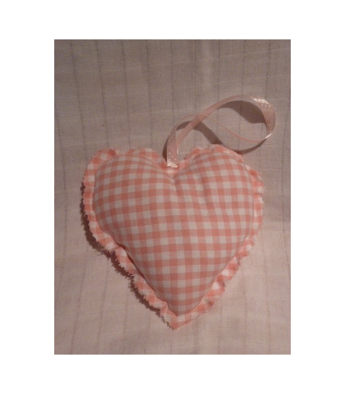 Hart van stof met groot ruit motief en ophanglusje. Afm. circa 20x18cm.